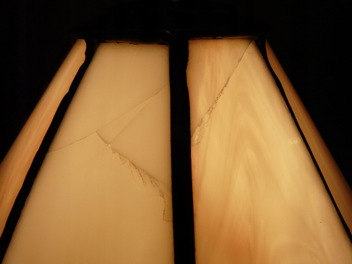 Абажур на двох склянках зверху має тріщини, найкраще видно на ще 9 фото