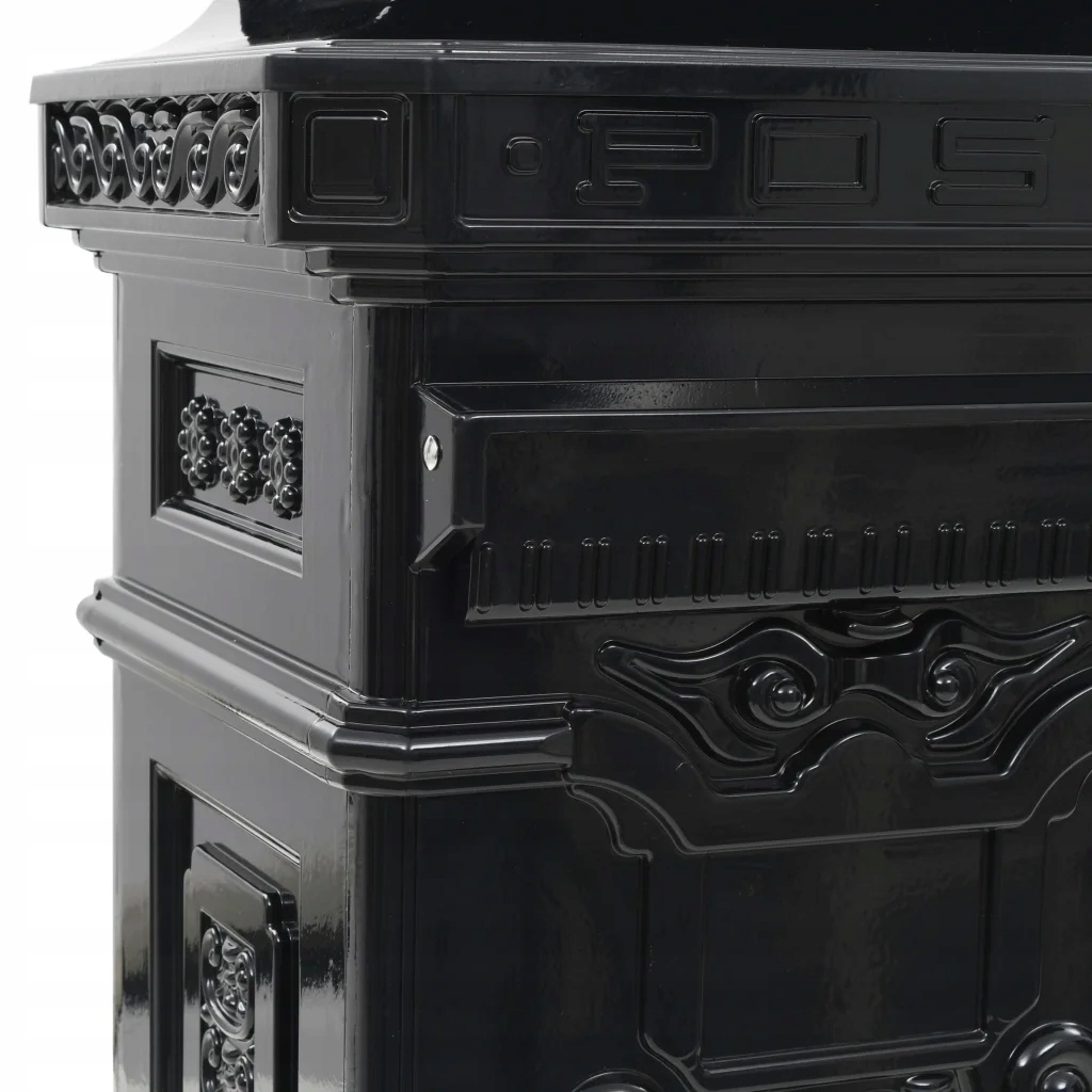 Наша красива поштова скринька в старовинному стилі стане практичним і декоративним доповненням до вашого саду, входу до вашого будинку чи приміщення компанії. Ця поштова скринька має широкий отвір для листів з клапаном, який захищає вміст від зовнішніх факторів. Він також має дверцята, що замикаються (2 ключа для кожної дверцята входять), щоб полегшити видалення листів. Ящик виготовлений із стійкого до погодних умов та корозії литого алюмінію, тому його можна розміщувати на вулиці. Він прикрашений багатьма старовинними декоративними деталями, які зроблять його привабливим для під’їзду або біля входу.