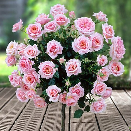 Троянда рожева, повисла, запашна, багаторазове цвітіння, квітки діаметром 10 м, квітки розташовані по кілька на довгих пагонах