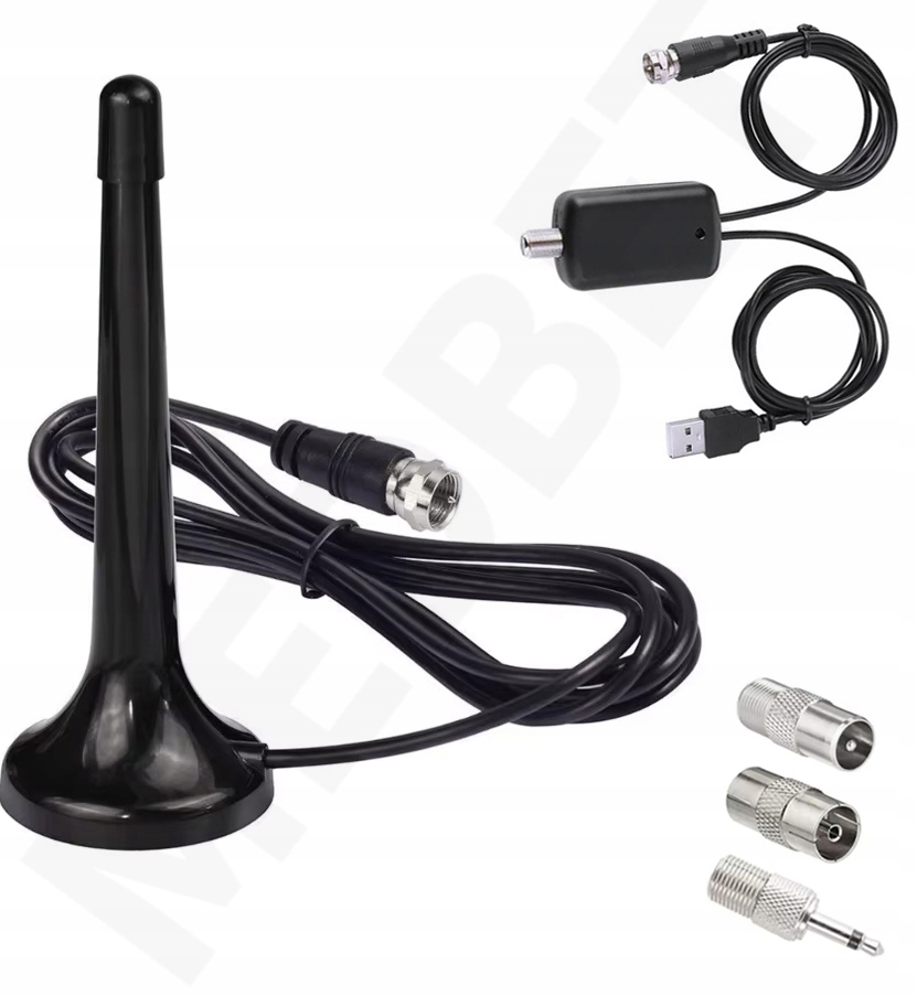 - Набір включає підсилювач антени, що живиться через порт USB (потрібен будь-який зарядний пристрій USB)