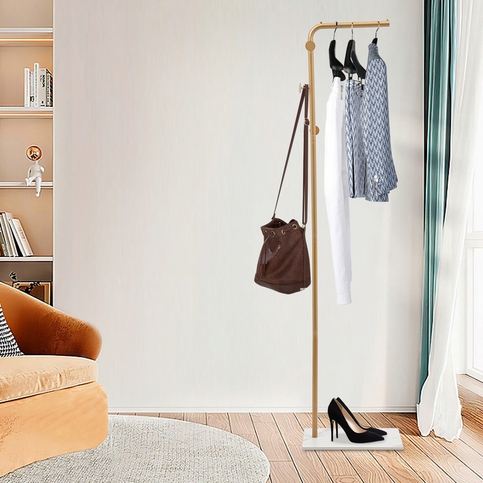 Стояча вішалка, окремо стояча вішалка для одягу, золота вішалка L-подібної форми