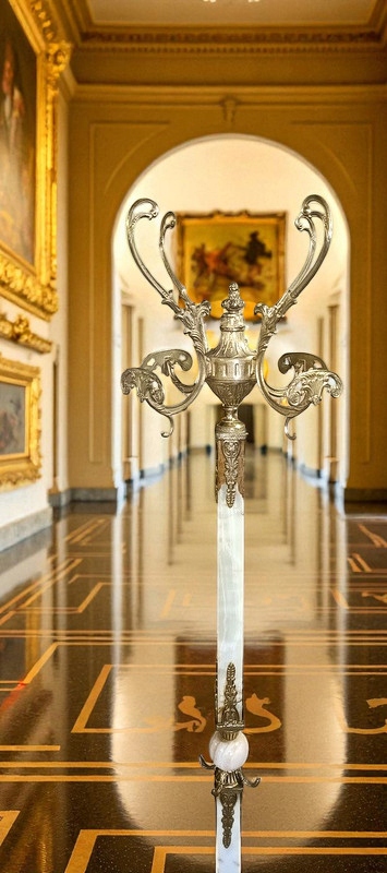 Дуже елегантна вішалка в стилі бароко. Виготовлений з латуні та оніксу. Має чотири ручки з потрійними гачками та чотири додаткові гачки посередині для дітей на зріст 86 см.