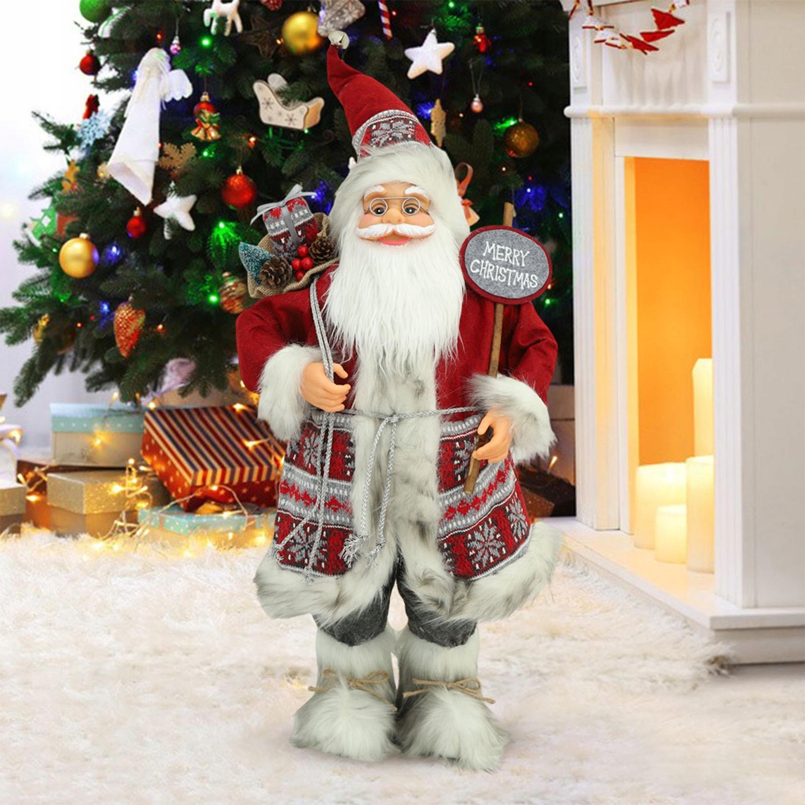 Матеріал: Різдвяна лялька Санта -Клауса виготовлена з тканинного поліестеру, красиво, чудово підходить для святкового часу.