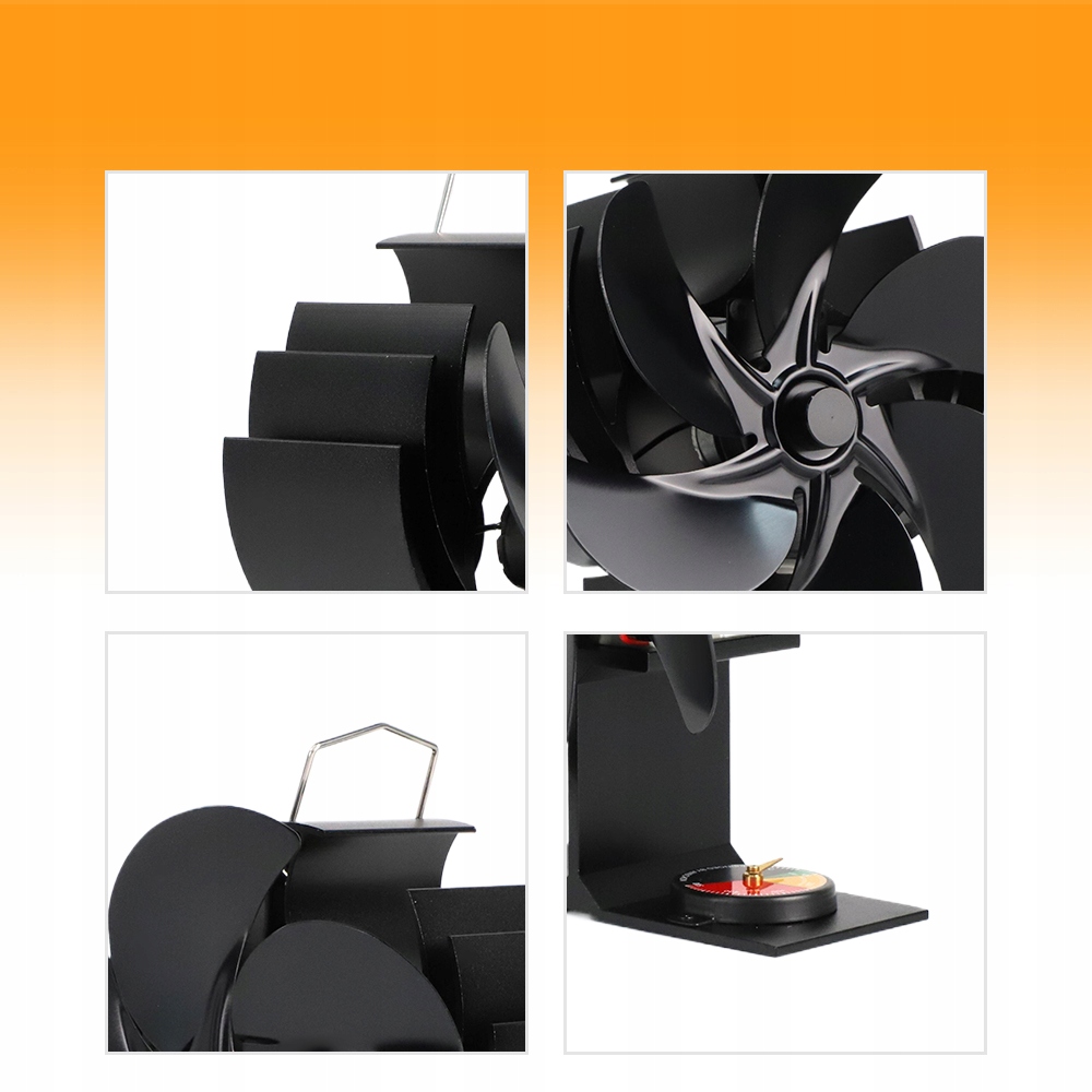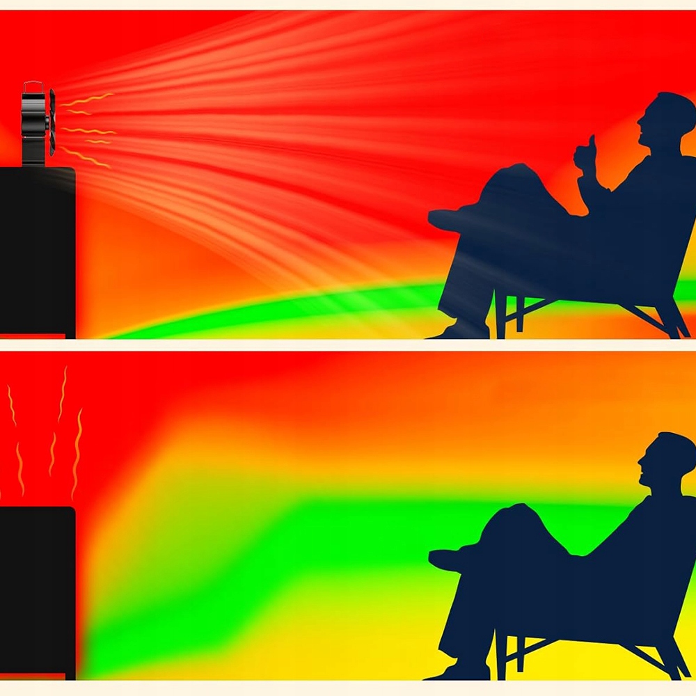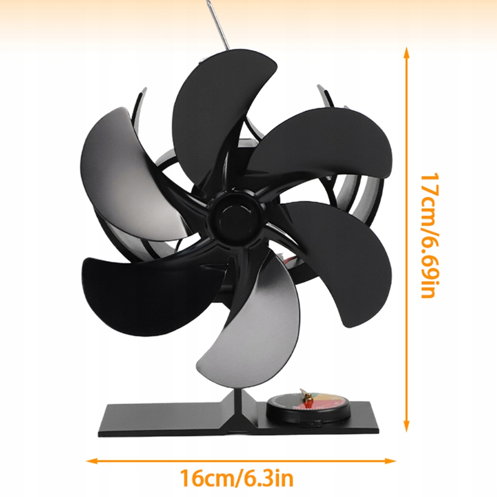 Вентилятор плити виготовлений з анодованого алюмінію та має більш товсту основу для ефективнішого перетворення енергії. 6 лопатей вентилятора забезпечують на 50% більше теплого повітря, ніж вентилятор печі з 4 лопатями.