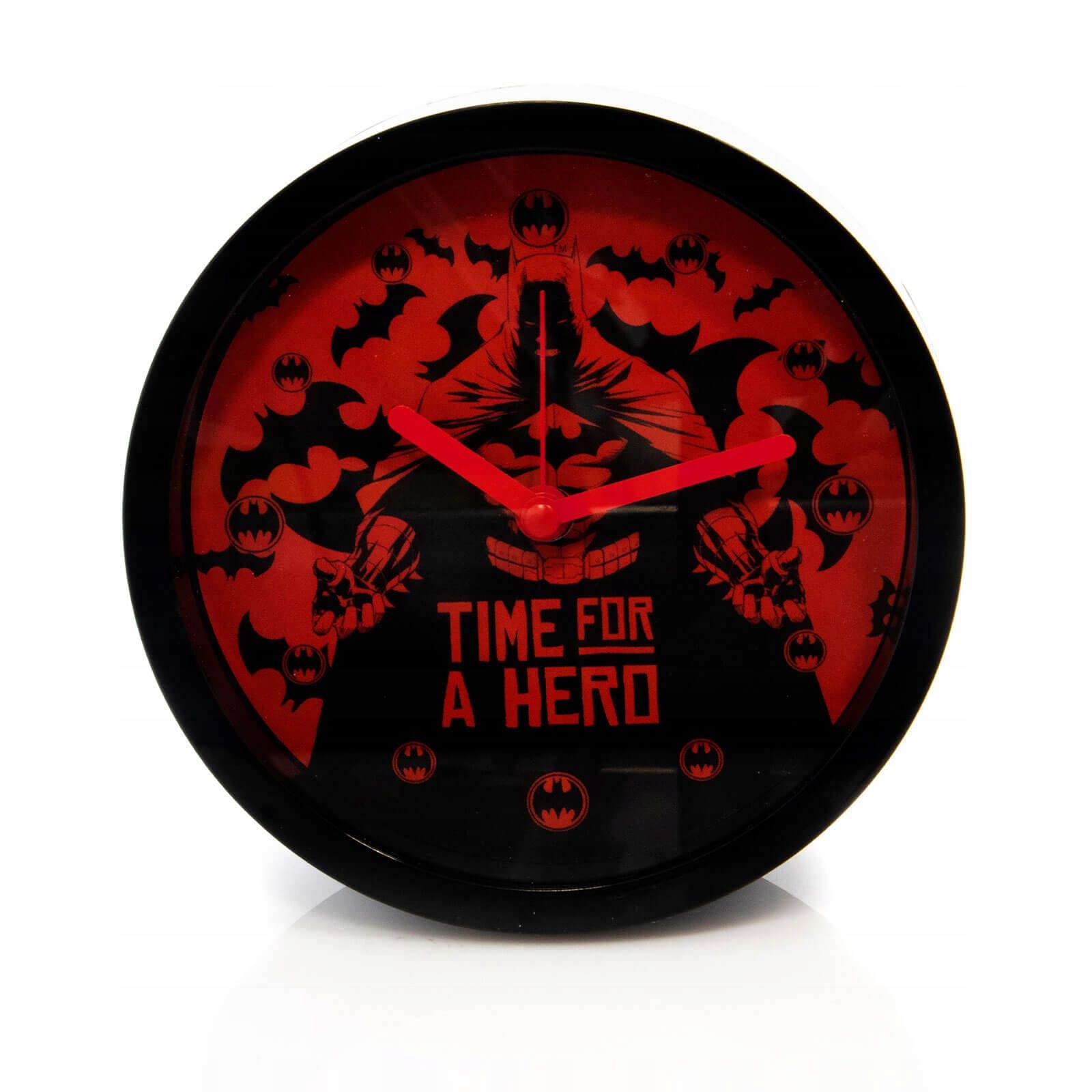 Фантастичний настільний годинник для фаната Бетмена. Має тихий і точний кварцовий механізм. Він оснащений зручною та простою у використанні ручкою, яка дозволяє легко встановити поточний час. Годинник має функцію будильника.