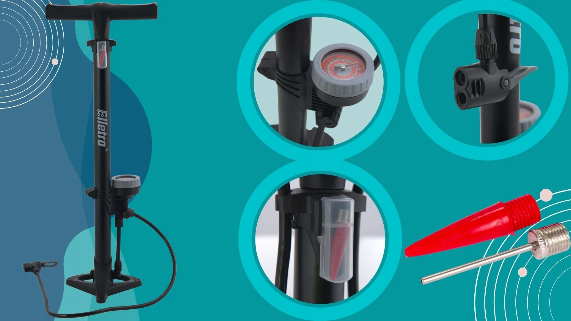 - ✅2 додаткові адаптери в комплекті - для м'ячів і матраців, встановлених у контейнері, встановленому на ручка насоса