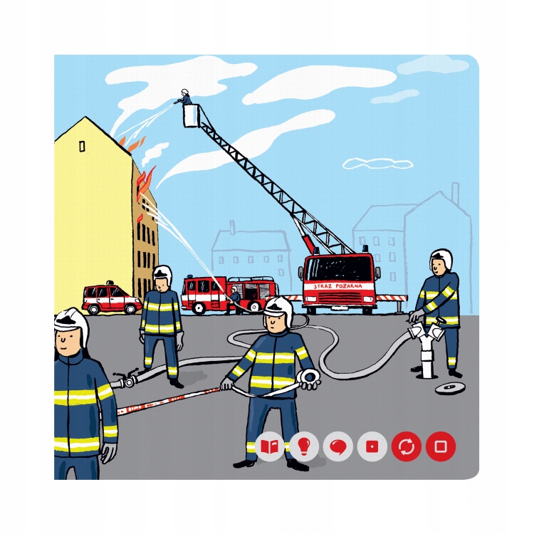 Пізнайся з закуліссям роботи пожежної частини! З цієї книжки ви дізнаєтесь, що, окрім мужності, потрібно пожежному для виконання своєї роботи. Ми дізнаємося про пожежні машини, яку техніку використовують пожежники та як вони будуватимуть протипаводкову дамбу. У книзі представлені ситуації, в яких можна отримати допомогу від пожежників. Ви також почуєте невідомі цікаві факти та зіграєте у вікторини.