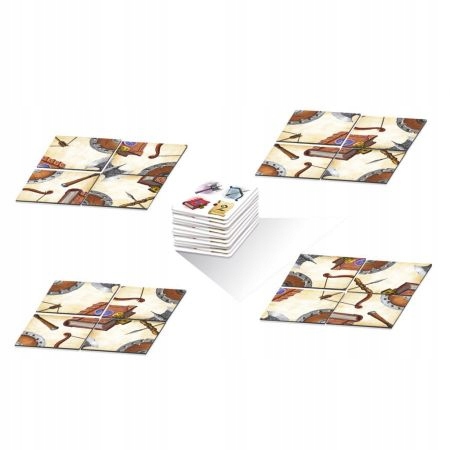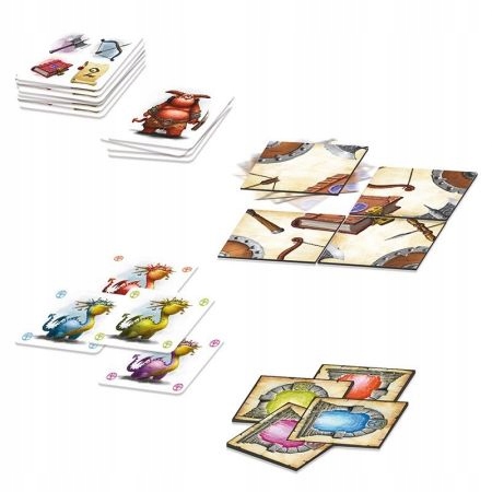 Покладіть стільки карт, скільки вказує номер на пергаменті. Якщо виявлене чудовисько знаходиться на тлі однієї зі зброї, побудуйте зброю від вашої плитки. Якщо у вас немає правильної зброї - час захищати! Якнайшвидше Побудуйте щит. Хто збирає найбільше карток - виграє!