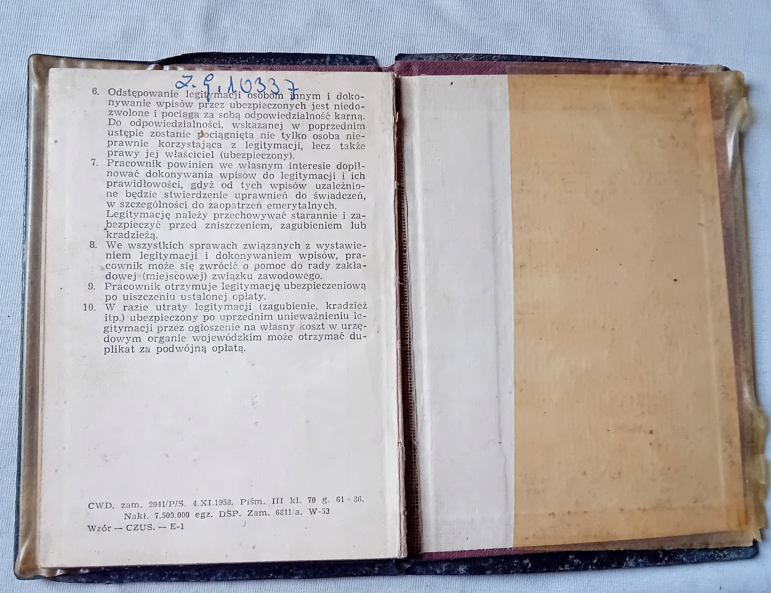 Страховий квиток працівника ПКП 1964р.