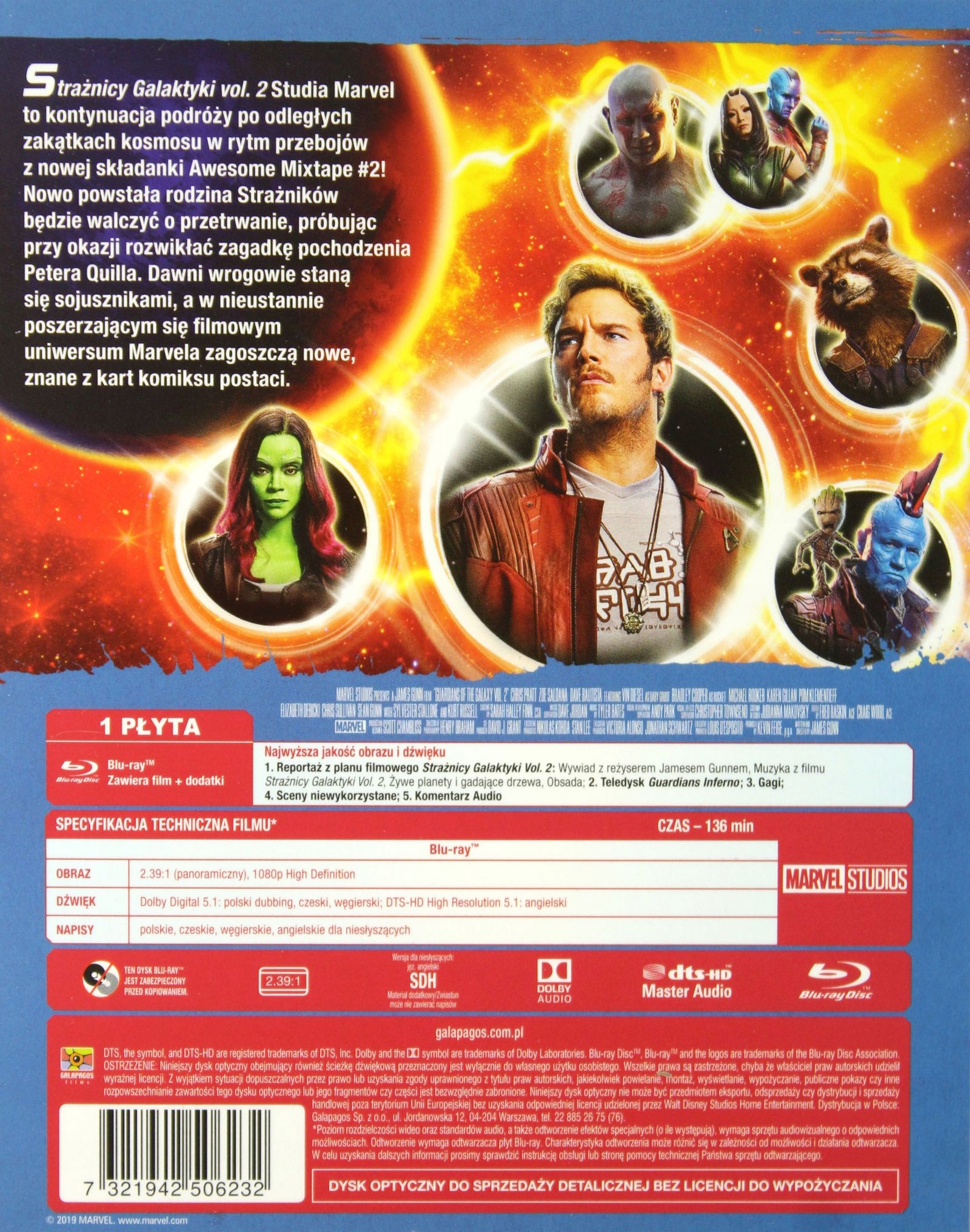 Просматривая «STRAŻNICY GALAKTYKI 2 [BLU-RAY]», вы можете быть уверены, что данный товар из каталога «[rubrica_name]» будет доставлен из Польши и проверен на целостность. В цене товара, указанной на сайте, учтена доставка из Польши. Внимание!!! Товары для Евросоюза, согласно законодательству стран Евросоюза, могут отличаться упаковкой или наполнением.