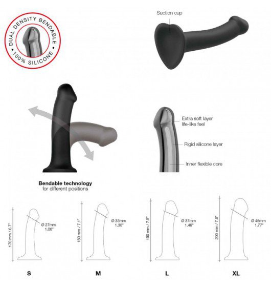 STRAP-ON ME Згинається фалоімітатор подвійної щільності чорний M