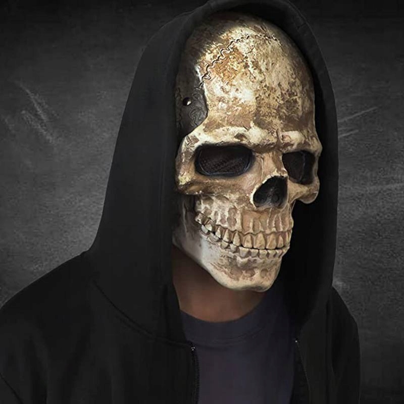 Маска черепа на Хелловін рухлива, ви можете імітувати мову черепа, коли він попереджає, і це зробить вас найреалістичнішим скелетом під час одягання. Маска черепа на всю голову підходить до будь-якого вбрання на Хелловін.