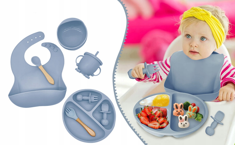 - Наша тарілка для дитини містить усе, що вам потрібно, включаючи 1 регульовану силіконову гидку, 1 тарілку для дитини з присоскою, 1 миску для дитини з присосною чашкою, 1 чашкою, 2 чайними ложками та 2 вилками.