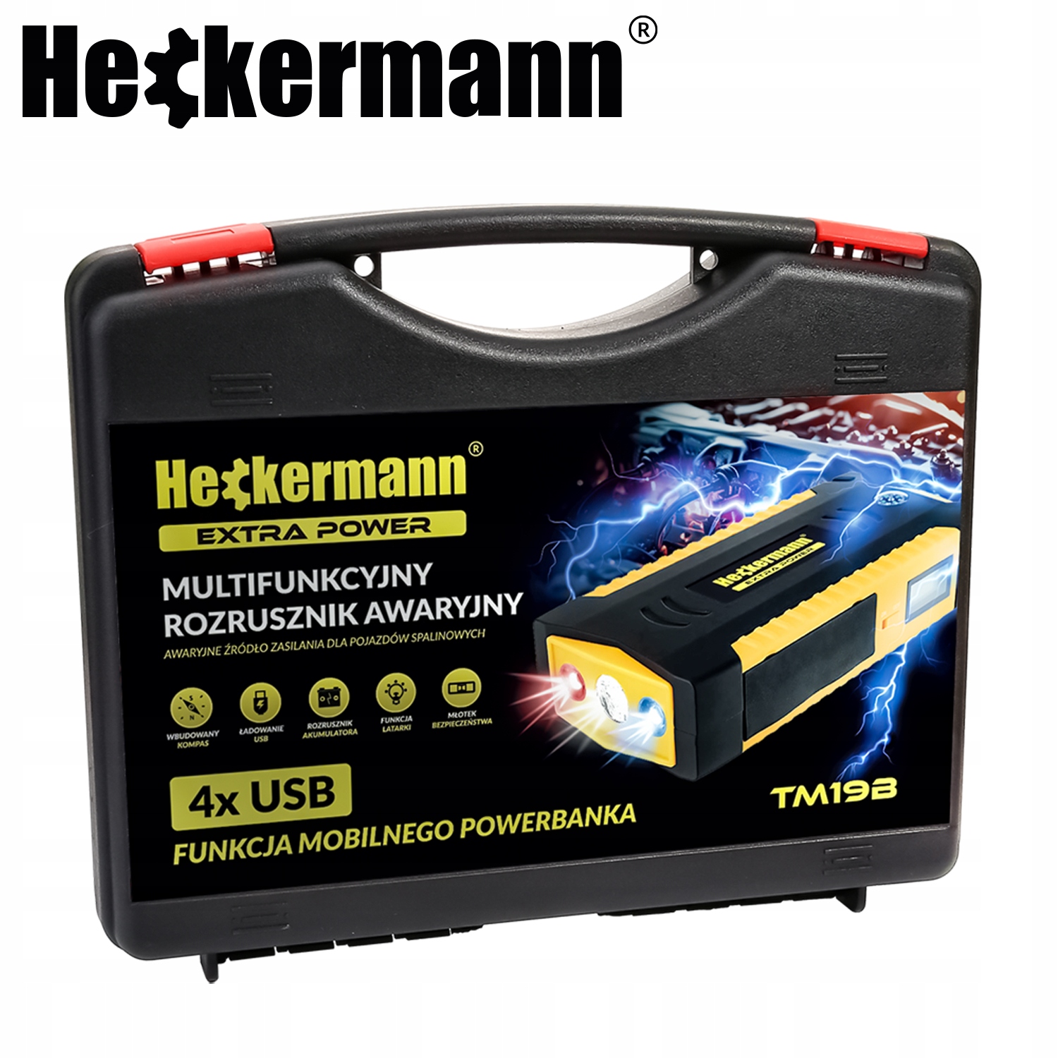 Heckermann TM19B - це не просто стартер. Це також мобільний PowerBank , оснащений 4 USB -портами , завдяки якому ви можете заряджати свої електронні пристрої у кожній ситуації.