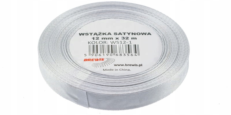 Стрічка атласна біла 12 мм х 32 м WS 12-1