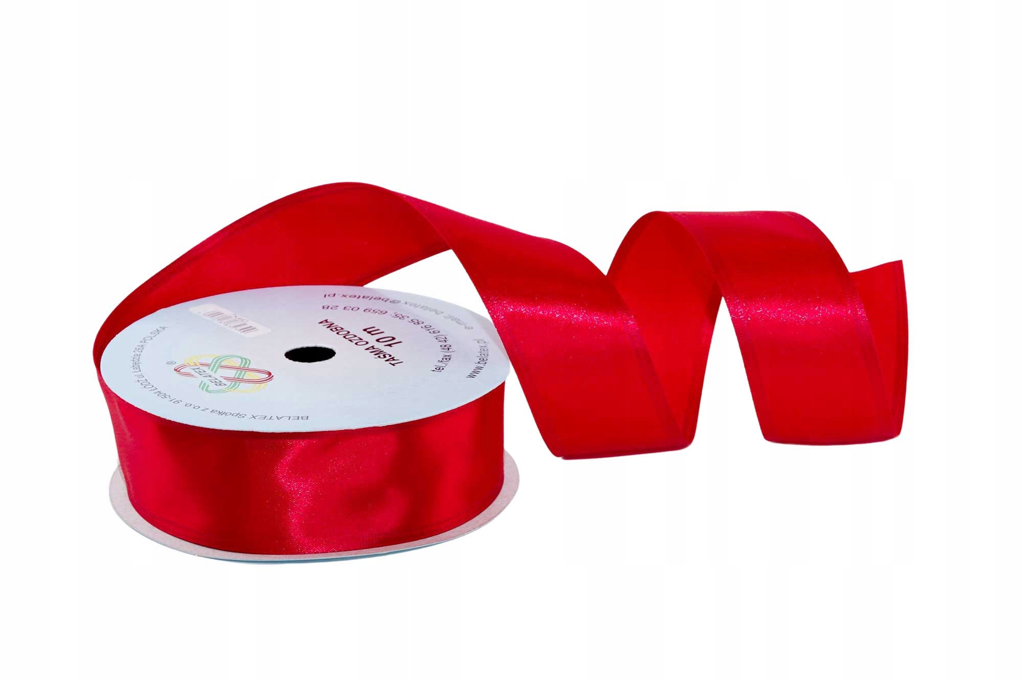 WSTĄŻKA SATYNOWA Z DRUCIKIEM 4cm/10m CZERWONA