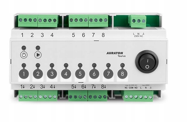 Смуга управління приводами теплої підлоги, призначена для установки в монтажні шафи. AURATON Taurus працює з дротовими терморегуляторами. Дозволяє одночасно контролювати роботу насоса центрального опалення та опалювального приладу.