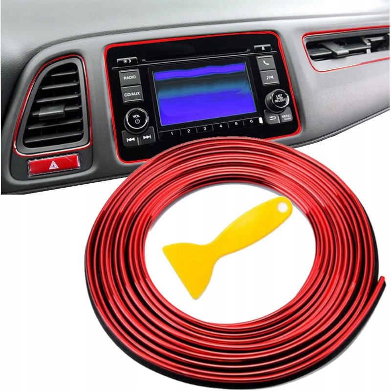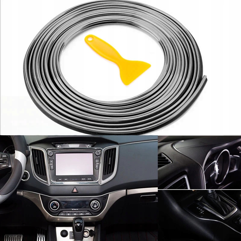 Смуга довжиною 5 метрів виготовлена з гнучкого матеріалу. Стрічку можна відрізати до потрібного розміру за допомогою ножиць або ножа. Підходить для всіх щілин всередині автомобіля, таких як двері, навколо радіо, коробки передач і панелі приладів. У місцях згинів відріжте смужку на чорному матеріалі.