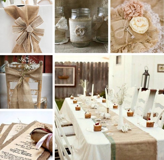 Різна ширина стрічки дозволяє декорувати різноманітні елементи, пов'язані з весіллям та весільними декораціями. Джут надає приміщенню та предметам сільського стилю бохо.