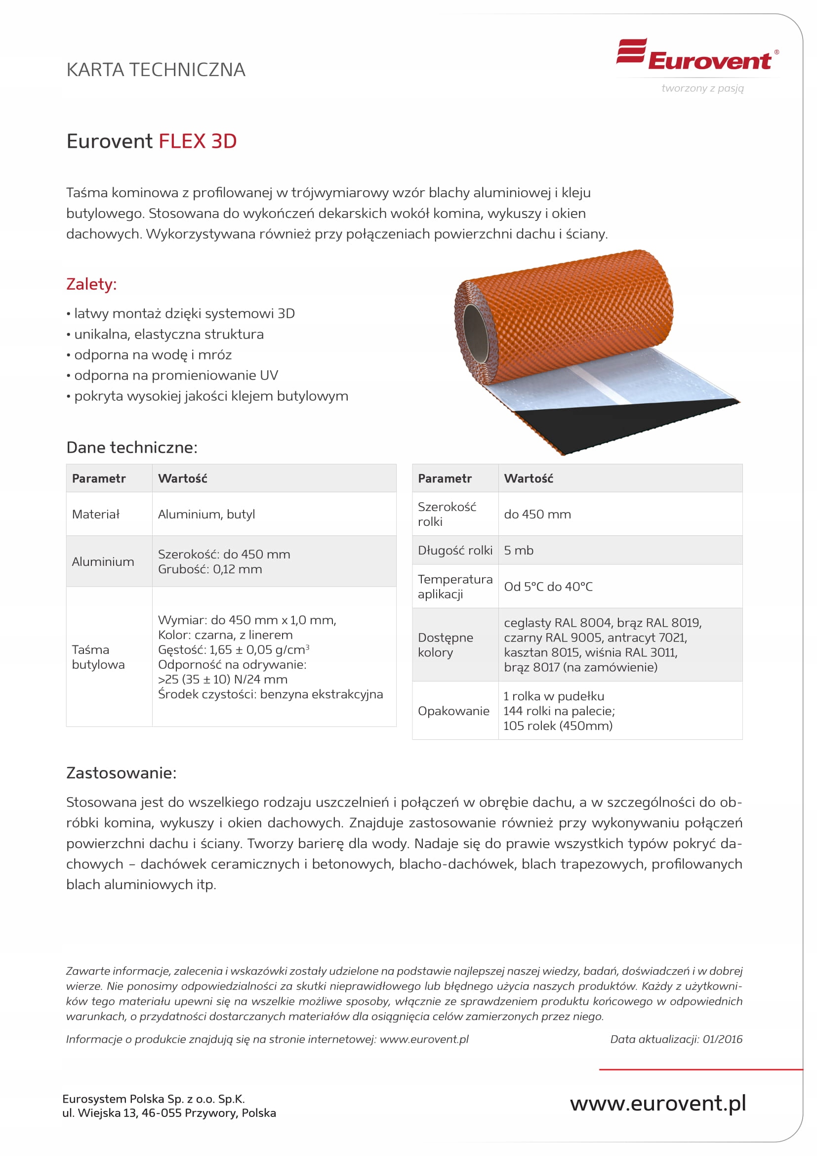 Використовується для всіх типів ущільнень і швів на даху, зокрема для димоходів, еркерів і дахових вікон. Також використовується для з’єднання поверхонь даху і стін. Підходить практично для всіх видів покрівельних покриттів - керамічної та бетонної черепиці, металочерепиці, трапецієподібних листів, профільованого алюмінієвого листа тощо.