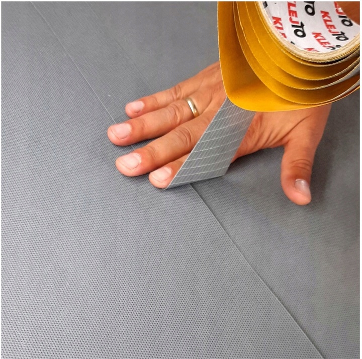 - Одностороння клейка пароізоляційна плівкова стрічка з поліпропіленового нетканого полотна, розділена с. силіконізована прокладка — це спеціалізована покрівельна стрічка, створена для МІЖНОГО З’ЄДНАННЯ пароізоляційної плівки, покрівельних мембран або алюмінієвої, армованої та покрівельної фольги.