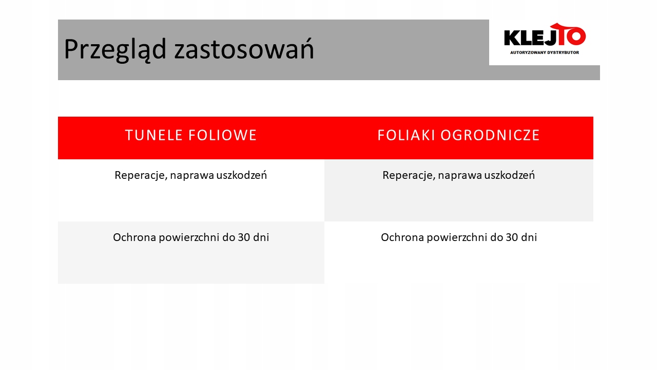 Завдяки своїй універсальності та довговічності, стрічка використовується для ремонту пошкоджень садової плівки, плівкових тунелів та інші конструкції з ПЕ плівки - це професійний продукт, призначений для садівників і фермерів. Для використання як на вулиці, так і в сезон.