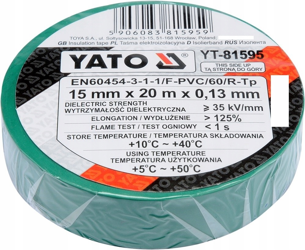 СТРІЧКА ЕЛЕКТРОІЗОЛЯЦІЙНА 15ММ 20М ЗЕЛЕНА YATO