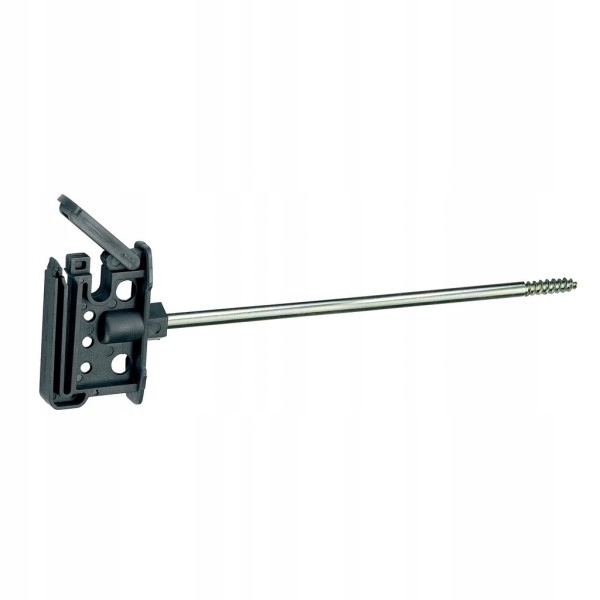 Ізолятор-затискач із плоским замиканням для стрічок шириною від 10 мм до 4 см, оснащений довгим штифтом з шурупом для дерев'яних стійок. Ідеально підходить для протягування стрічки максимальною шириною 4 см. Незамінний у місцях, де потрібно відокремити лінію електричної огорожі від решти огорожі, часто використовується в огорожах для ланей і оленів, де електрична огорожа служить додатковим засобом безпеки. Незамінний при проведенні шнура електропастуха, наприклад, по огорожі, вкритій плющем, тощо. Спеціальна засувка стабільно утримує стрічку у вертикальному положенні, запобігаючи її розтягуванню та зміні положення.