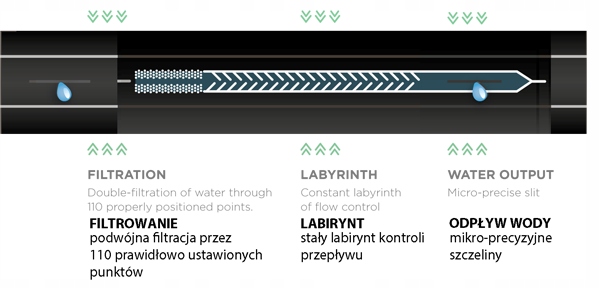 💦 Крім того, стрічка стійка до розтягування та розтріскування, а ретельно сформовані випромінювачі забезпечують рівномірний потік води. по всій довжині.