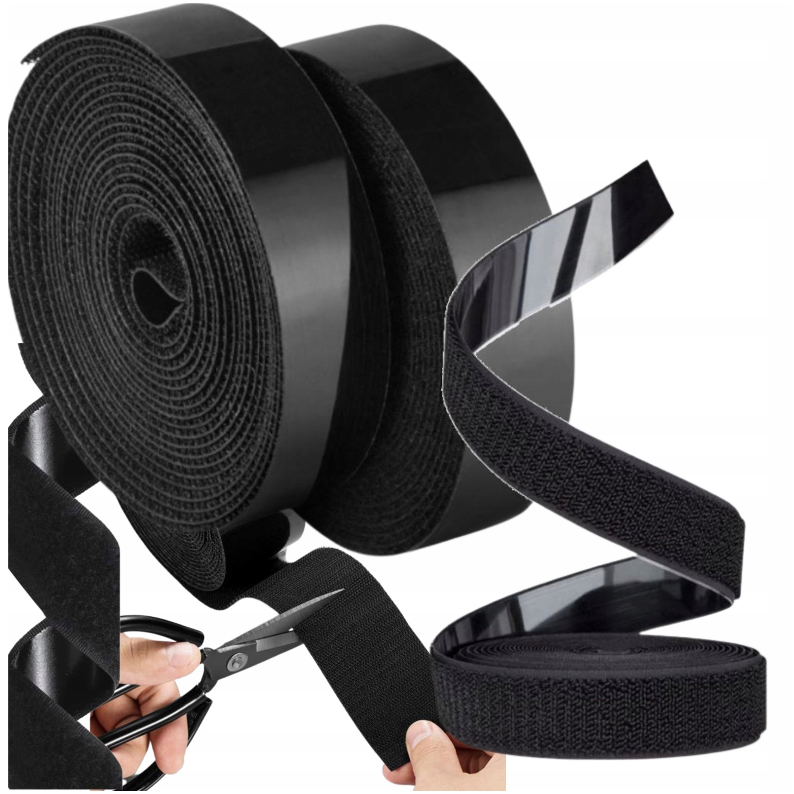 СТРІЧКА ВЕЛКРО З КЛЕЄМ МІЦНА САМОКЛЕЮЧА ЛИПУЧКА НА РУЛОНІ, ЧОРНА, ДЛЯ РІЗАННЯ 5М