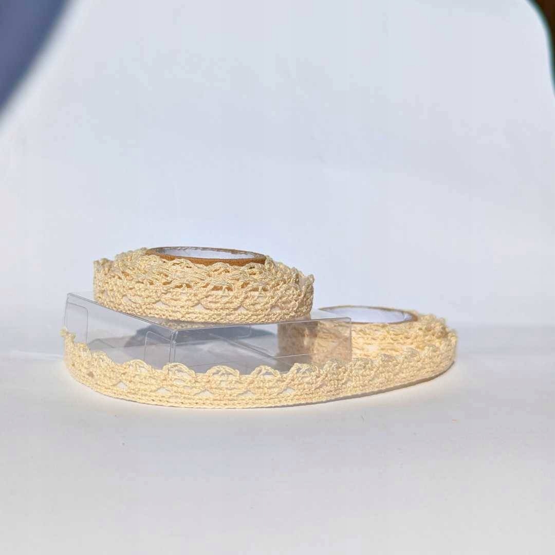 Додайте чарівності та витонченості своїм ремісничим проектам за допомогою нашої бавовняної мереживної стрічки розміром 1,8 x 1,5 см. Ця елегантна мереживна стрічка є втіленням стилю та класичної елегантності, створюючи тонкий, але виразний акцент для різноманітних застосувань.