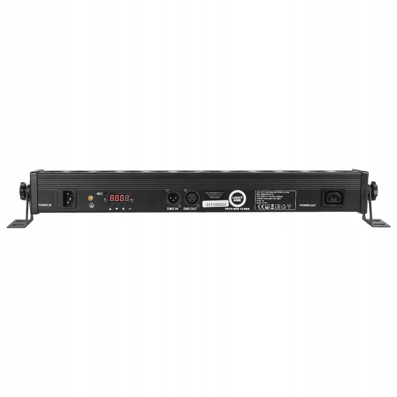 Світлодіодна стрічка Light4Me Deco Bar оснащена 12 потужними світлодіодами 3 Вт (3 в 4 секціях), що працюють зі світлом у кольоровій палітрі RGB (червоний, зелений, синій). Ефект колірного градієнта RGB, динамічні ефекти та стробоскоп із регульованою швидкістю дозволяють користувачеві легко запускати готові вражаючі візуальні ефекти ✅. Ергономічний бездротовий інфрачервоний пульт дистанційного керування (ІЧ), що входить до комплекту, дозволяє легко регулювати налаштування пристрою залежно від ваших потреб без використання кнопок на корпусі. Пристрій має диммер повного діапазону, який дозволяє точно регулювати яскравість під потреби світлового шоу ✅. Light4Me Deco Bar — обладнання класу IP20, що означає, що воно захищене від проникнення твердих сторонніх предметів діаметром 12,5 мм і більше. На задній панелі розташовані розетки живлення (включаючи так званий «pass it forward», що дозволяє передавати напругу безпосередньо від пристрою до пристрою), вхід і вихід DMX, а також панель управління з цифровим дисплеєм і чотирма кнопками ✅. Використовуючи їх, ми можемо змінити налаштування в меню та вибрати один із чотирьох режимів роботи, які нас цікавлять: