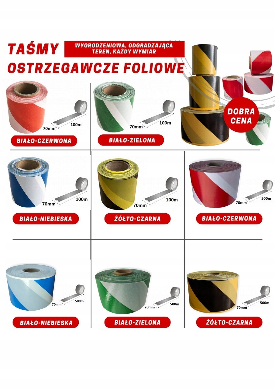 Скотч без нанесення клею, з попереджувальним та розділовим ефектом. Використовується для огородження робочих майданчиків, розташованих поза проїжджою частиною, місць, не призначених для руху та стоянки транспортних засобів, а також руху пішоходів. Дуже популярний у будівельно-монтажних компаніях, які працюють у сфері водопостачання, зв'язку, енергетики, каналізації та опалення.
