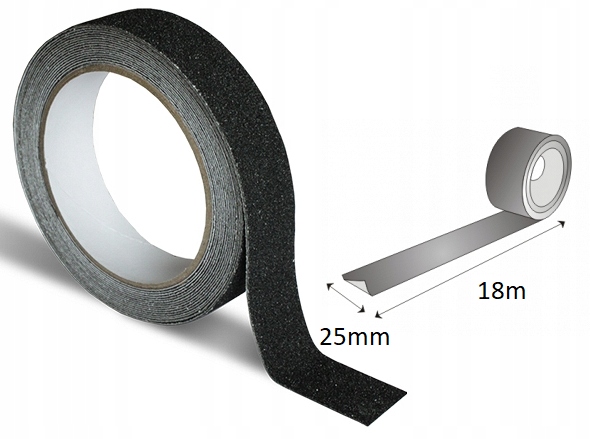 СТРІЧКА ПРОТИКЛИЗКЕ 25мм 18м самоклеюча ЧОРНА попереджувальна сходи