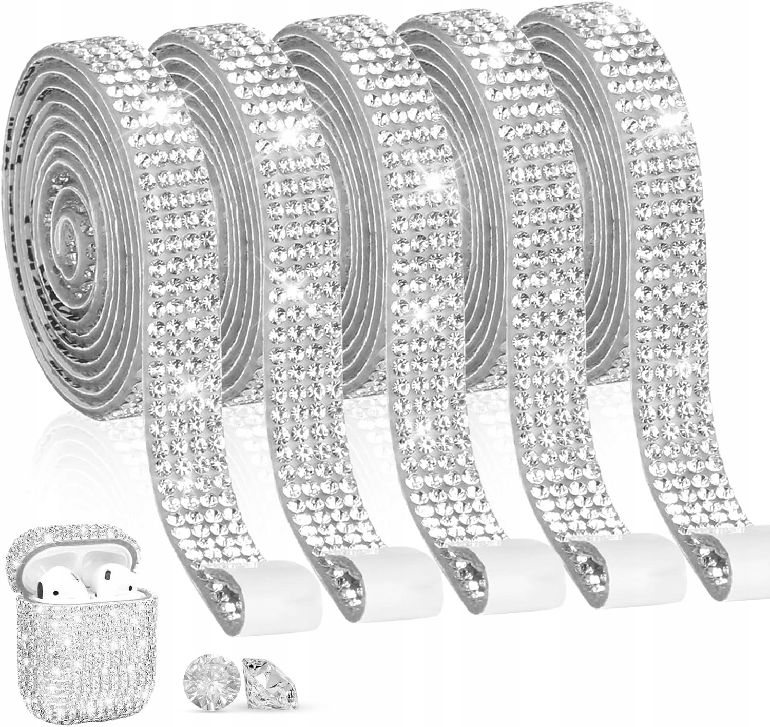 СТРІЧКА САМОКЛЕЮЧА СРІБНА З ДЕКОРАТИВНИМИ КАМІНЧИКАМИ 5ШТ х 92СМ ПРИКРАСА