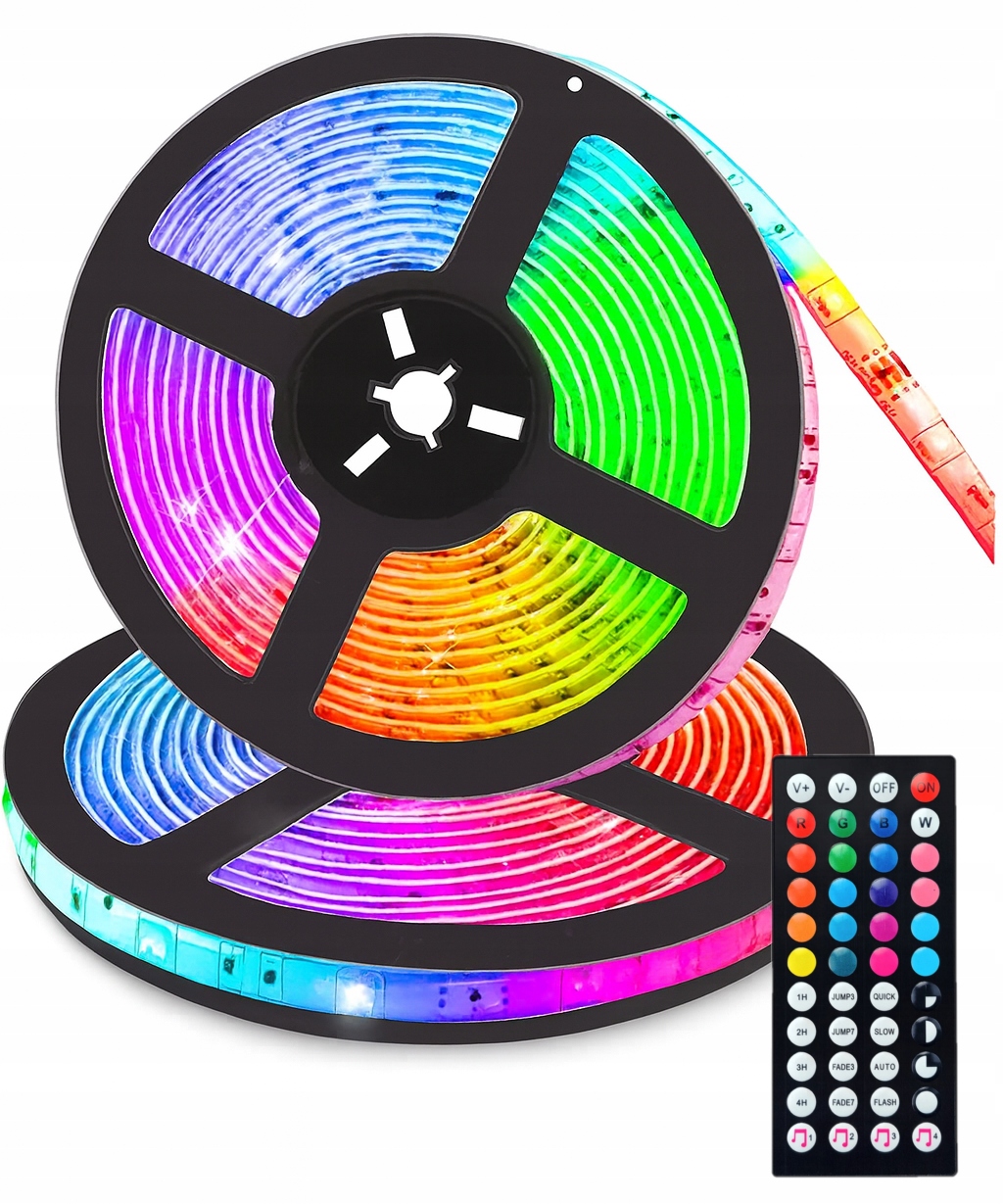 СТРІЧКА СВІТЛОДІОДНА КОЛЬОРОВА СТРІЧКА RGB LEDS 5м САМОКЛЕЮЧИЙ НАБІР ДЛЯ ДИСТАНЦІЙНОГО КЕРУВАННЯ