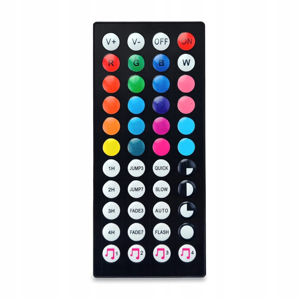 ✅Пульт дистанційного керування - 44 кнопки, вибір кольору, режими блимання, яскравість і темп.