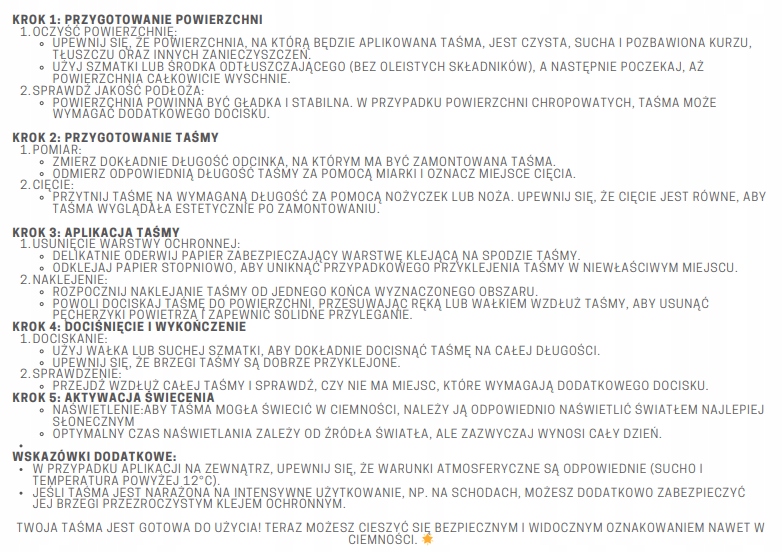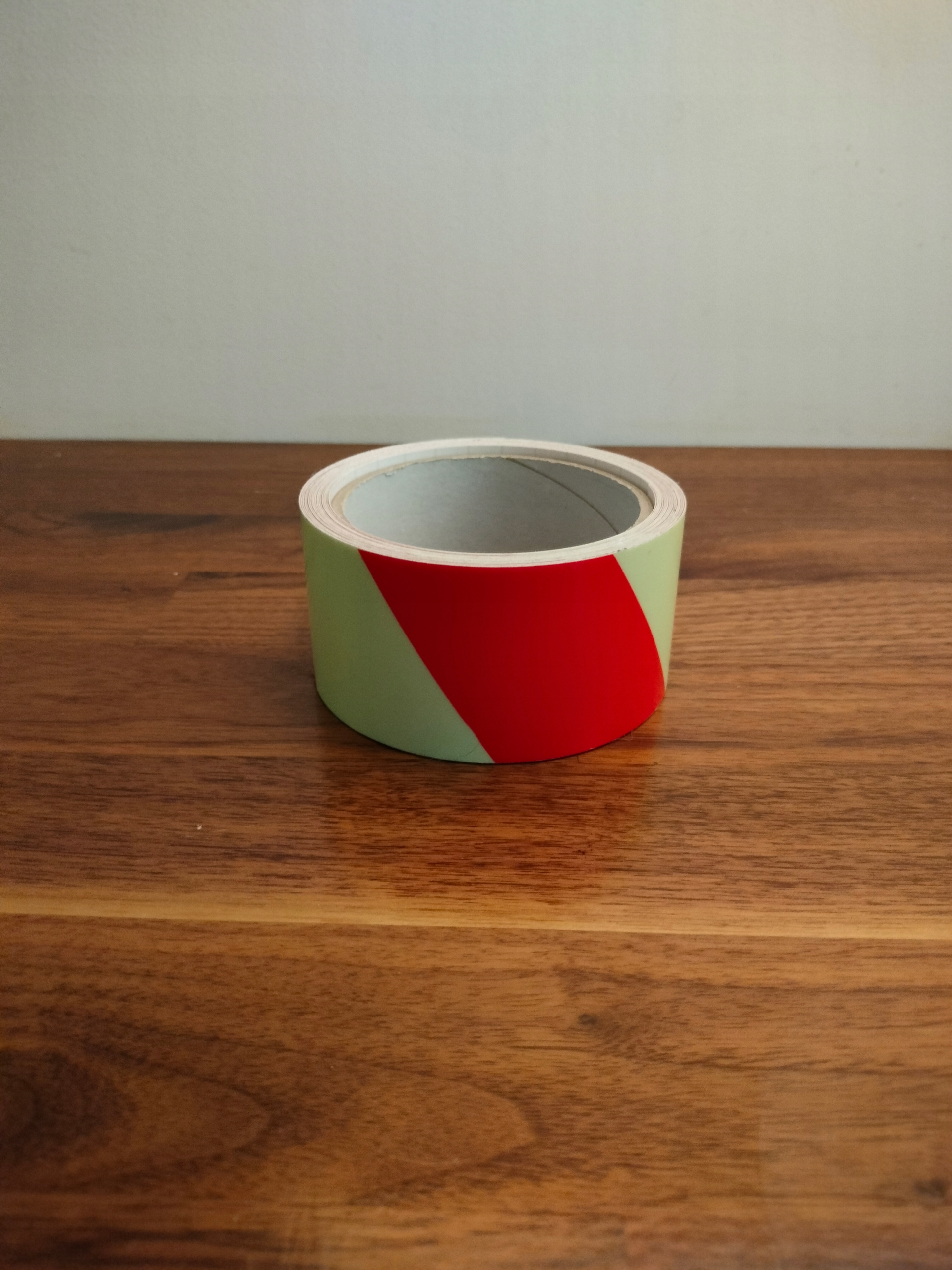 Односторонні клейкі фотолюмінесцентні стрічки з ПВХ плівки. Вони покращують видимість електричних вимикачів, замків, розеток і поручнів у темряві.