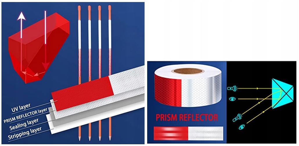 - Стрічки з технологією MICRO-PRISM, на відміну від інших технологій виробництва світловідбивних стрічок, мають ідеальний кутовий світловхід, кристали якого підсилюють відображення світла, що потрапляє до 400%.