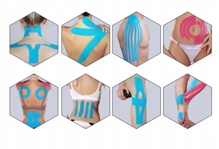 Кінезіопатчі. Це високоякісні гнучкі реабілітаційні/медичні тейпи, які використовуються для кінезіотерапії - методу, розробленого в Японії. . Стрічки складаються з бавовняної тканини та акрилового шару, покритого гіпоалергенним клеєм. Використання високоякісної бавовни та особливого хвилястого малюнка, покритого клеєм, робить наші стрічки схожими на еластичність людської шкіри. Завдяки своїй структурі вони пропонують м'яке та ефективне лікування. Їх можуть використовувати фізіотерапевти, лікарі, масажисти, тренери, спортсмени та пацієнти.