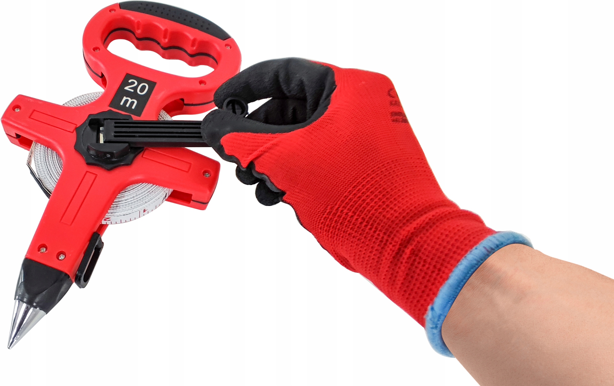 Геодезична міра довжиною 20 м і 12 мм шириною. Розроблений для вимірювання великих відстаней на відкритому зоні або в приміщенні. Стрічка виготовлена з стійкого до стирання та вицвіла волокна. Зручний кривошип прискорює прокат стрічки після вимірювання.