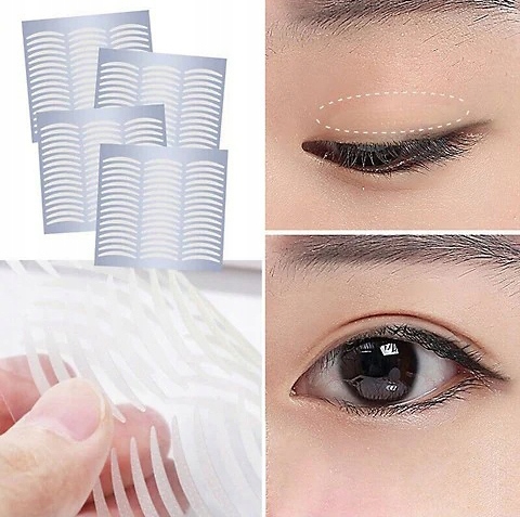 простий у використанні та комфортне. Завдяки їм ви будете приклеїти падаючі повіки. Колапс буде чіткішим або зміненим, що візуально збільшує очі. Стрічка довжиною 2,5 см, а ширина посередині - приблизно 3 мм. Клей пристойний, стрічка добре тримається на повіці, не рухається, але легко відшаровуватися та покращити, якщо нам не подобається ефект