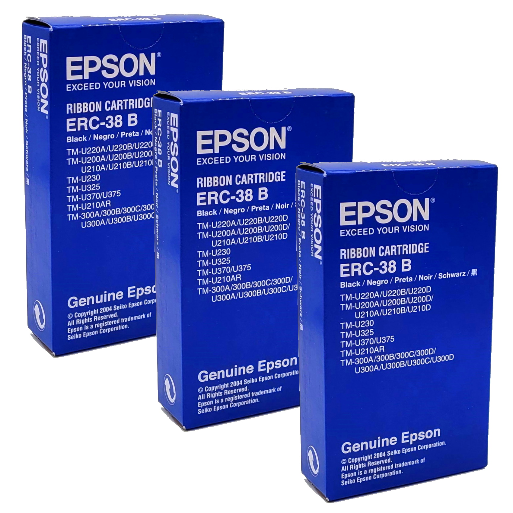 Набір із 3 штук 100% оригінальних нових чорних стрічок для матричних принтерів Epson ERC-38 B