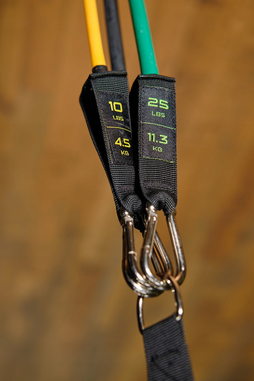 ❗ Тренувальний набір ремінців Majestic Sport складається з 5 ремінців різної сили опору. Зручні пінопластові ручки, встановлені на кінцях, підвищують комфорт під час тренувань і запобігаютьнадмірному потовиділенню рук. У набір також входять ремені для щиколотки, дверний анкер і нікельовані сталеві карабіни вантажопідйомністю до 300 кг.
