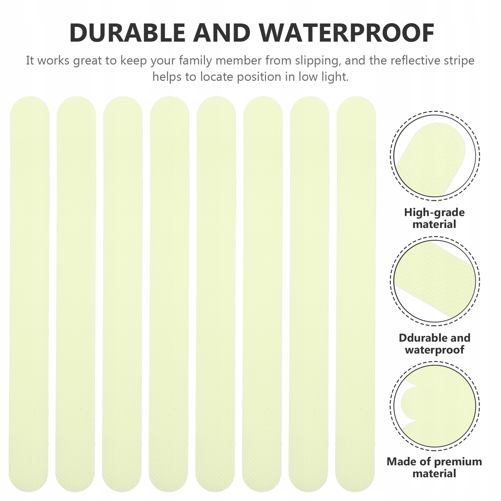 ✅Ця протиковзка планка для сходів виготовлена з високоякісного матеріалу, водонепроникна, її неможливо легко згорнути або відклеїти. Він чудово запобігає ковзанню члена вашої родини, а світловідбиваюча смужка допомагає визначити ваше положення в умовах слабкого освітлення. Чудово підходить для твердої деревини, пластику, пандусів, сходів, човнів, металу, плитки тощо.
