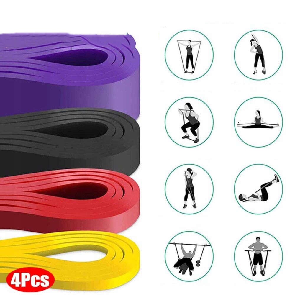 -вана 4 рівні опору: дуже легкий (жовтий) / 8-15 фунтів, світло (червоний) / 15-35 фунтів, середній (чорний) / 25-65 фунтів, сильні (фіолетові) / 35-85 фунтів. Потягніть -up, насоси, швидкість тренувань, лавки, присідання, практикувати руки, плечі, груди, сідниці, ноги та інші частини тіла.