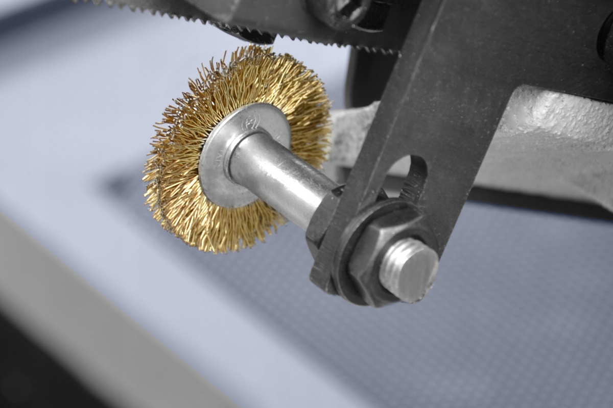 Швидкість подачі регулюється на панелі керування фрези. У нас є дві швидкості ріжучої стрічки: 34 і 68 м/хв. У нижньому положенні рукоятки (після різання матеріалу) ріжучий пасовий привід автоматично вимикається. Безпека забезпечується кришками ріжучої стрічки та мікроперемикачами, які зупиняють двигун після завершення циклу різання або відкриття будь-якої з кришок.Додатковий захист полягає в автоматичному відключенні ріжучої стрічки у разі обриву ріжучої стрічки.