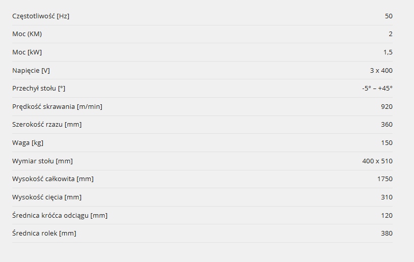 Масивний стіл із важкого сірого чавуну, нахил від -5° до +45°. Регульований кінцевий упор використовується для встановлення столу під кутом 90°.