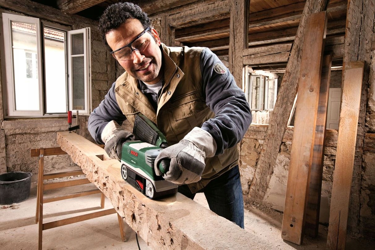 Одна з найпопулярніших стрічкових шліфувальних машин BOSCH із двигуном потужністю 710 Вт.