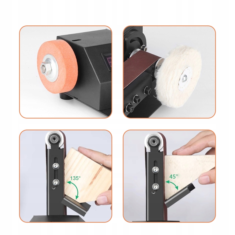 📐【Регульований натяг ременя та вертикаль】:Робочий стіл можна регулювати під будь-яким кутом. Верстат оснащений потужним двигуном, який забезпечує стабільну обробку металів, ножів, дерева, оргскла та інших матеріалів високої твердості. Ефективний і довговічний, не хвилюючись про перегрів або перегорання, забезпечує безпечну та комфортну роботу.